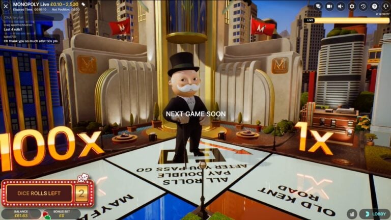 Bet on numbers for quick wins or aim for the 2 Rolls or 4 Rolls bonuses to trigger the immersive board game, where dice rolls can multiply your prizes. You could then land on a Chance segment, which will award cash prizes or multipliers that could lead to wins up to 10,000x your stake.