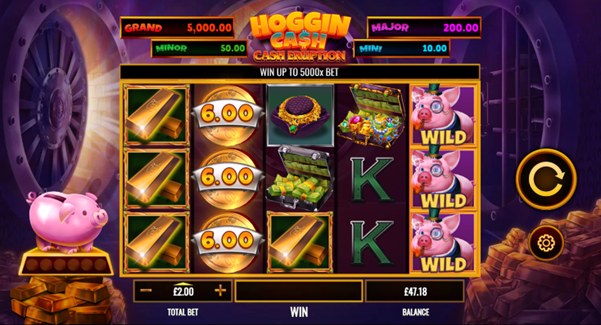 Industry powerhouse IGT was arguably first to the party with cash collect slots when it released the Cash Eruption slot in 2020. The game’s main bonus – a respins feature with special reels where you accumulate cash and jackpot symbols – has been transplanted to several games since with huge success, with Hoggin Cash Cash Eruption perhaps the best place to start.
