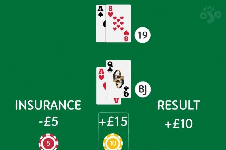 This is basically a version of the insurance rule which lets you take a guaranteed win at even money – 1 to 1 odds – instead of taking the risk that the dealer will also get Blackjack. Here’s how it works for a £10 bet….