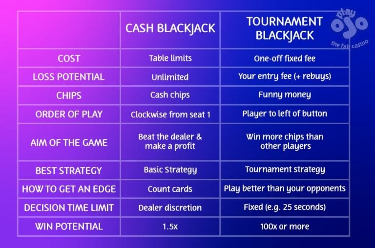 None of that is true of tournament blackjack. To understand why tournaments demand different skills and discover how to win a blackjack tournament, it helps to really see the difference between regular cash tables and tournaments.