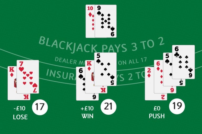 There are 3 possible outcomes in a blackjack hand as well as some exceptions to these rules when you or the dealer gets Blackjack itself.