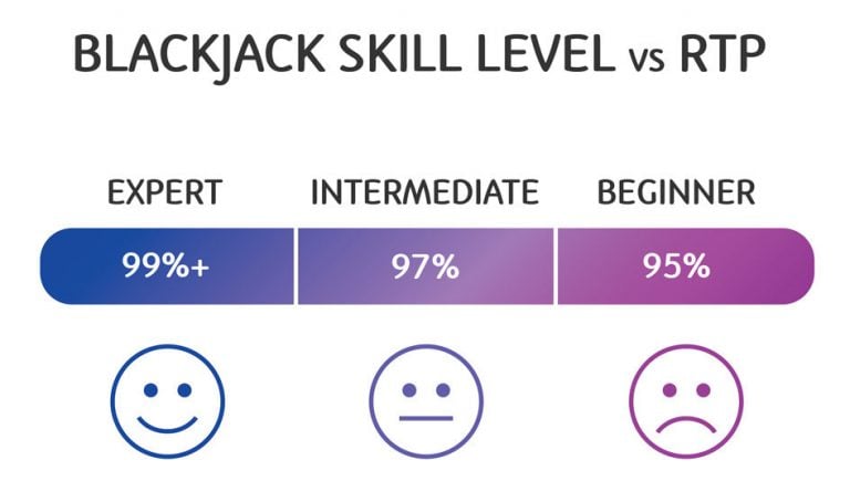 The least skilled (or most reckless!) players might only get a 95% RTP, while the average blackjack player probably sees a return of somewhere between 97-98%.