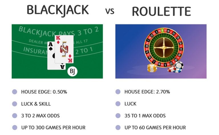 Roulette is a game of pure chance whereas blackjack is a combination of luck and skill, so you get a big say in the outcome of games.