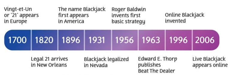 No one really knows where blackjack came from, but the first mentions of a card game called ‘Twenty One’ appeared in literature from France and Spain in the 1600s.