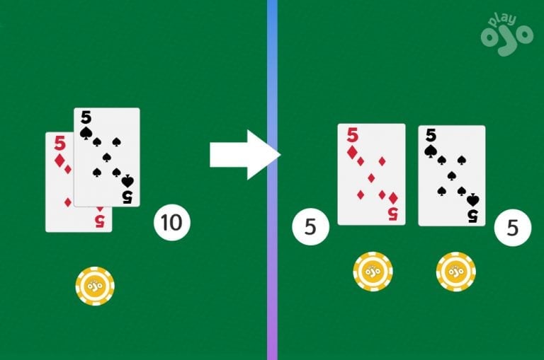 When you play blackjack online or in a live casino, you’re dealt 2 cards face up. If you get dealt a pair – that’s 2 cards of the same value like 22 or KJ – blackjack rules give you the option to split them, for the cost of an extra bet.