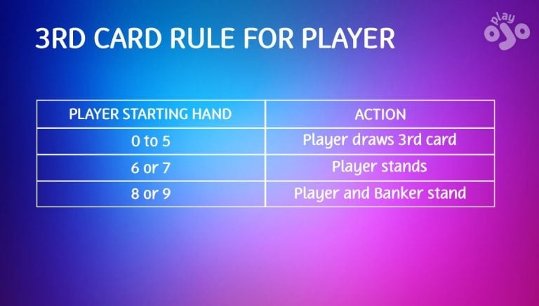 I know I said Baccarat rules are straightforward and mostly they are. But that’s not true of this one. If a winner can’t be found after 2 cards are dealt, the Player hand gets played out using these rules: