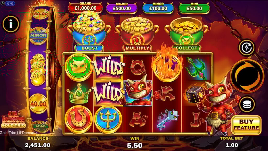 Listen up, because we’ve got some cheeky news that’s hot off the press! If you’re familiar with Playtech’s Lil’ Demon, you’ll be pleased to know that he’s back causing trouble in a brand-new slot: Gold Trio: Lil’ Demon.
