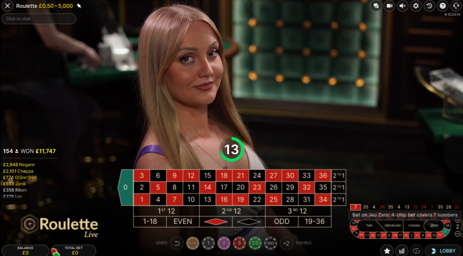 Meaning ‘zero game’, the jeu zéro bet is a smaller version of voisins du zéro, involving just seven numbers. Click the Zero section of the racetrack to place this section bet, with only a single chip needed for each bet involved: