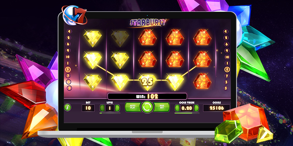 Starburst is a dazzling sight for sore eyes. On the reels you’ll see five differently coloured gems and shapes, lucky red seven symbols and golden bar symbols. To bag yourself a cash prize, you’ll need to land at least three identical symbols.