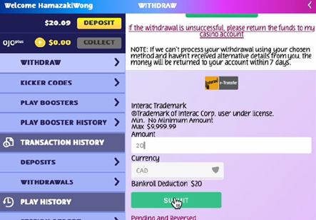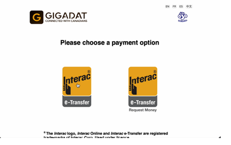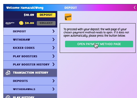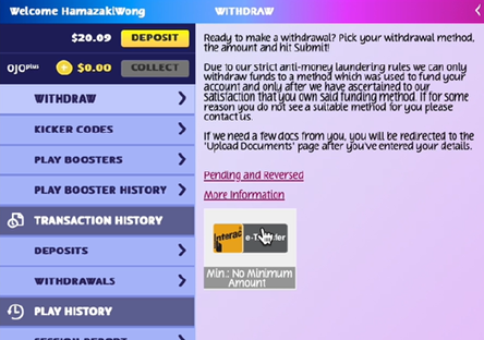 Quick note from OJO: To be able to withdraw funds using Interac, you must first use it for a deposit.