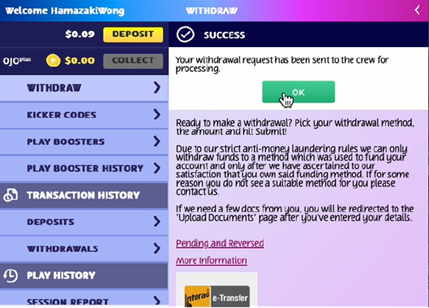 Monitor your withdrawal request via the “Pending Transactions” in the Cashier.
