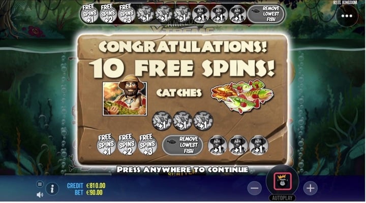 Already Collected Fisherman Wilds – This starts the free spins round with up to 3 Fisherman Wilds already collected, which contributes to the progression toward retriggering the feature.