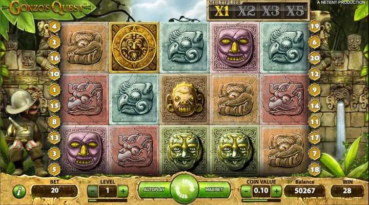 One cool feature of Gonzo’s Quest is the ability to use autoplay where you can choose between 10 and 1,000 automatic spins. This way you can sit back and relax as you watch the reels go and listen to the sounds of the jungle.