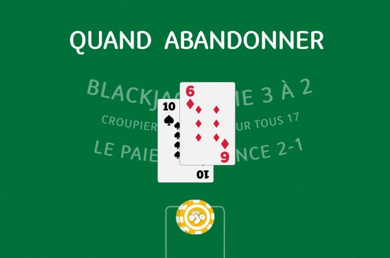Abandonnez sur un 15 contre un 10 ou un As : contre un As, vous perdez en moyenne 64 cents pour chaque dollar misé. Ainsi, abandonner pour récupérer 50 cents est la meilleure décision.