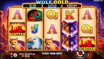De nombreuses machines à sous populaires ont pour thème les animaux. Il y a de tout, allant des chats, des chiens et des poissons, aux cochons et aux pandas. Vous pouvez jouer avec des loups dans la toundra, vous enfoncer dans la jungle amazonienne en compagnie de jaguars, de serpents et de singes, ou encore découvrir dans les plaines sauvages d'Afrique avec des tigres, des éléphants et des rhinocéros. La machine à sous Wolf Gold de Pragmatic Play est l’une des machines à sous avec des animaux les plus populaires.