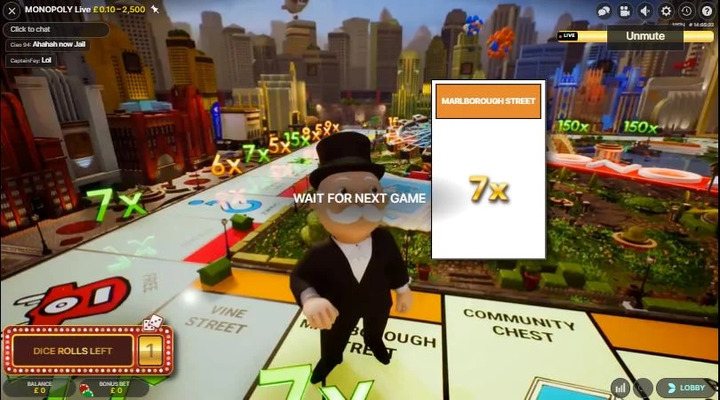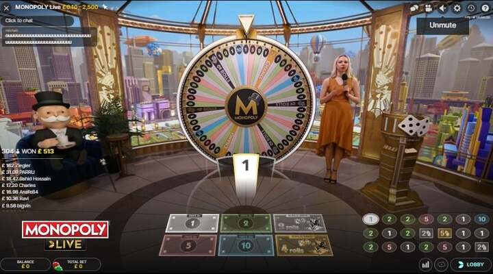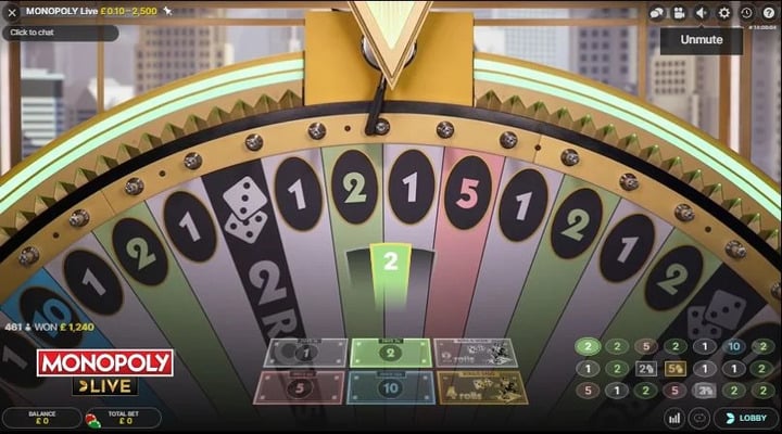 There’s no demo mode for Monopoly Live, but you can play from 10p per spin.