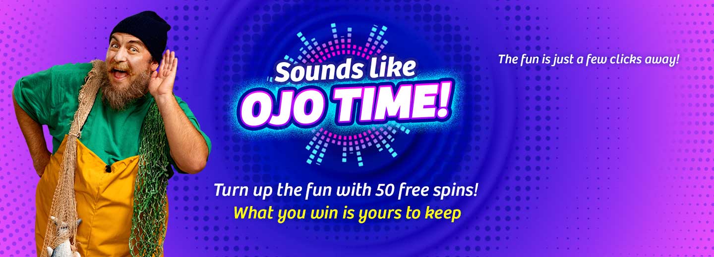First deposit only. 50 free spins on Big Bass Bonanza slot. Free spins valued at £0.10. Excludes players in N.I. Irregular play may lead to removal of reward. OJO’s Rewards and Game Play policy applies.