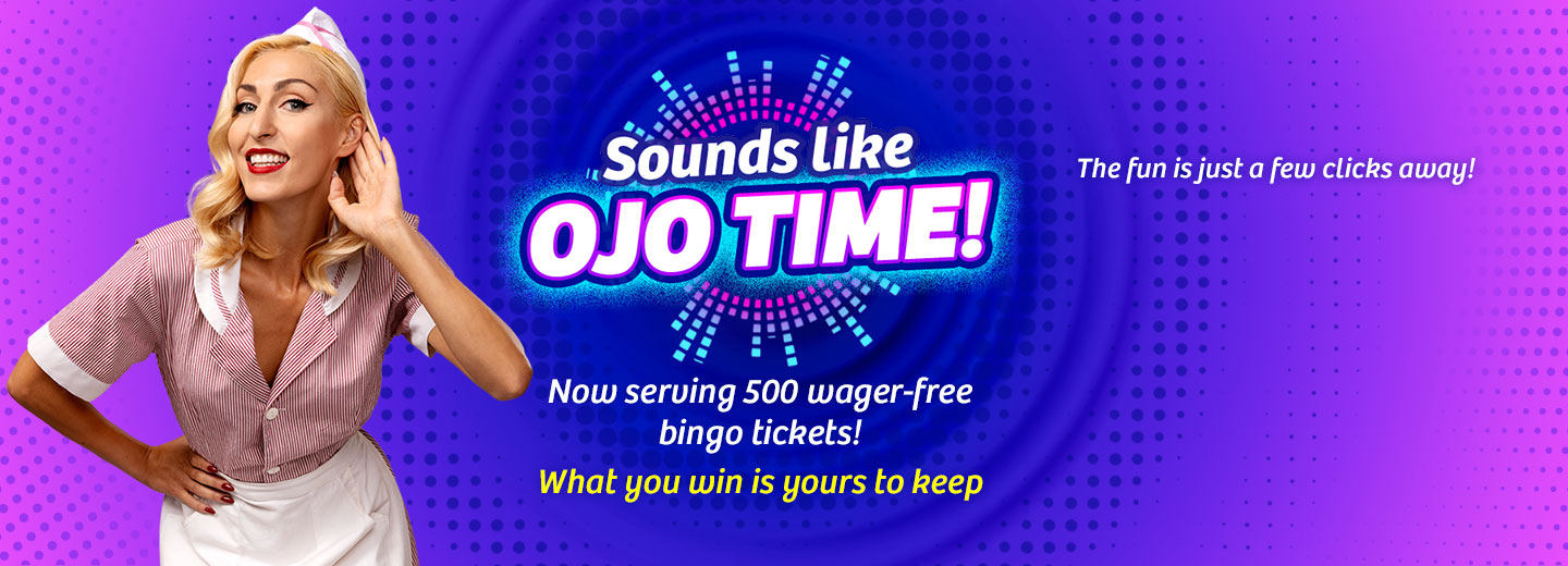 Deposit and spend £10 or more on any bingo game to get 500 free bingo tickets. Free tickets valid on selected games up to £0.10 each, see bingo rooms for info. Excludes players in N.I. Irregular play may lead to removal of reward. T&Cs, OJO’s Rewards & Game Play policy applies.