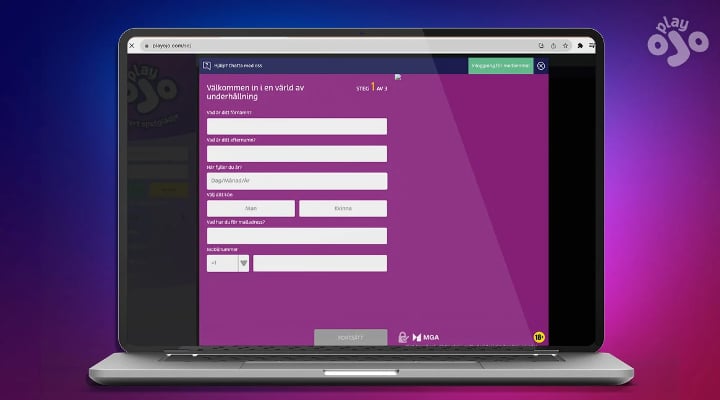 För att kunna betala och komma igång med spelandet på vårt Skrill casino krävs det först att du skapar ett Skrill konto, och därefter att du registrerar ett OJO-konto. Besök PlayOJO, ta dig vidare till registreringen för att gå med, och fyll i de uppgifter som efterfrågas i 3 steg.