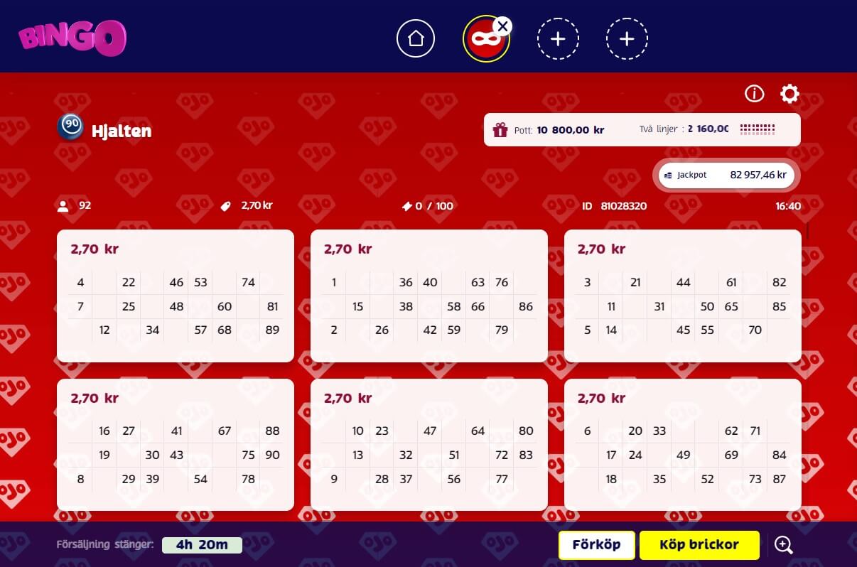 Hjälten Bingo är ett av våra mest uppskattade bingorum. Här hittar du en kombination av traditionell 90-bollarsbingo, dagliga spel med garanterade priser och en social atmosfär via chattrummet.