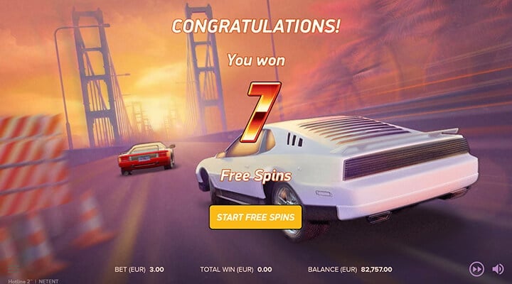 Det är som sagt den neonlysande scattersymbolen som kan trigga free spins. Landar du 3 stycken i grundspelet triggar du igång inledningsvis 7 free spins. Hotline 2 free spins kommer med speciella bonusfunktioner. Landar du en wildsymbol på hjul 2, 3 eller 4 kommer hjulet att expandera!