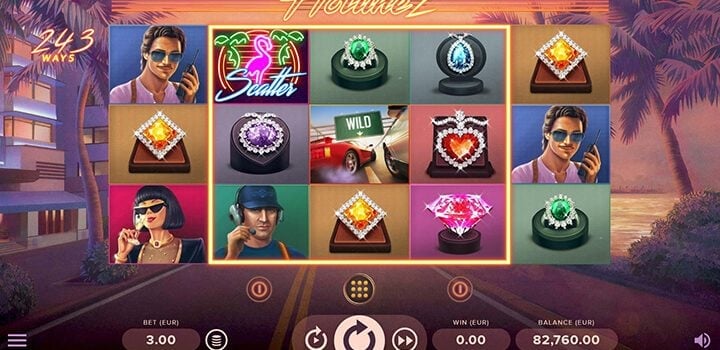 Till detta finns också en scattersymbol som kan ge dig free spins, samt en wildsymbol som kan expandera om den hamnar på en Hotline. (Mer om Hotlines nedan.) Wildsymbolen skildrar i sin grundform en bil och texten ”Wild”, medan scattersymbolen är en flamingo i lysande neonfärger.
