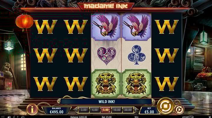 Wildsymbolen i Madame Ink spelautomat gör faktiskt mycket mer än att bara ersätta andra symboler. Helt slumpmässigt kan den även utföra andra bonuskonster! Det här kallas för Wild Ink-funktionen och innebär följande:
