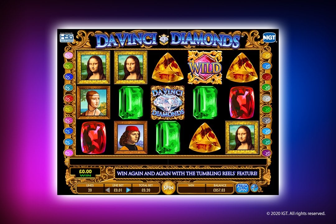 Vi älskar det och ni älskar det. Ingen kan förneka att Da Vinci Diamonds är en första klassens slot. Det här är absolut ett av IGT:s mest populära spel, oavsett om du är en sann konstexpert eller tror att da Vinci bara är en karaktär i en bok av Dan Brown. Med 20 fasta vinstlinjer är spelet baserat på renässansperioden och speciellt då förstås universalgeniet Leonardo da Vincis verk.