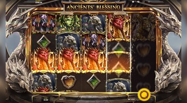 Ancient’s Blessing slot på 5 hjul och 4 rader är tillverkad av Red Tiger Gaming. Här finns 30 vinstlinjer som du ska försöka landa mytologiska monster längs. Kombinationer räknas när de på intilliggande hjul hamnar längs vinstlinjer och börjar från det första hjulet till vänster.