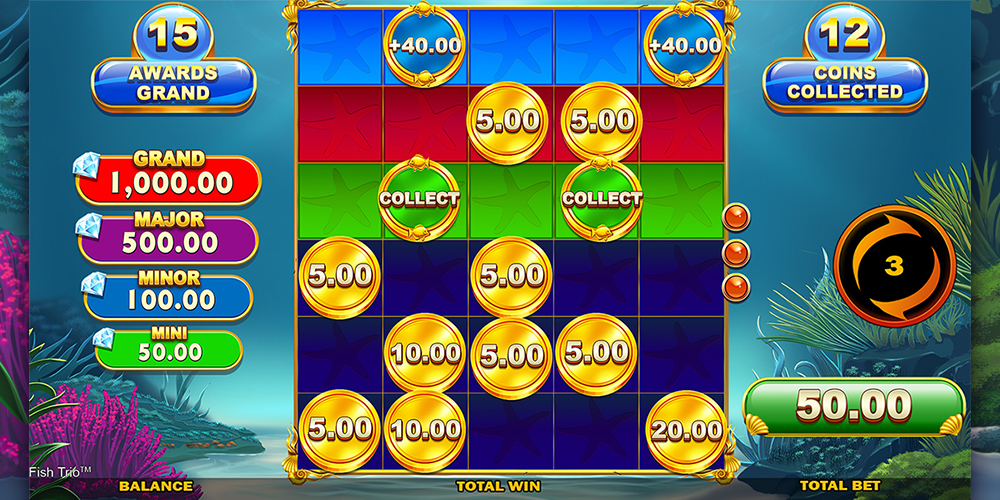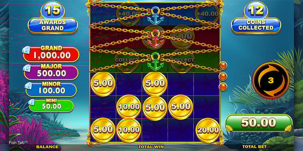 Fish Trio känns som ett spel där något alltid händer. Mynten staplas, rader låses upp, värden förändras och respins frestar hela tiden med nästa stora ögonblick.