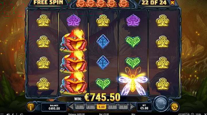 Landar du däremot 3 eller fler av scattersymbolerna triggar du igång läget med Fire Toad Free Spins. Hur många gratissnurr du får beror på hur många symboler du triggar i gång läget med.
