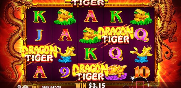 När du börjar spela Dragon Tiger slot kommer du att se draken på ena sidan hjulen och tigern på den andra. Där emellan kommer symboler ur den kinesiska bildvärlden att snurra. De högbetalande, vanliga symbolerna är nämligen tigern, sköldpaddan, grodan, haren och guldfisken.