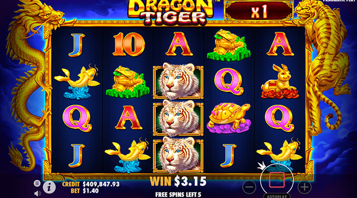 Ändå draken då? Spelet heter ju trots allt Dragon Tiger, så varför finns bara tigern bland de vanliga symbolerna? Svaret är följande: Medan tigern är den högst betalande vanliga symbolen är draken wildsymbol. Som wildsymboler brukar ersätter den alla ovan nämnda symboler.