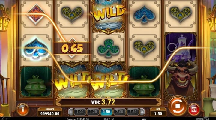 Wildsymbolen föreställer i sitt grundformat en spegel. Tjuren krossar alltså inte bara dyrbart porslin – den orsakar också sju års olycka för den stackars damen. Som wildsymboler brukar kan den här ersätta alla de vanliga symbolerna. På så sätt hjälper den dig att skapa och utöka kombinationer.
