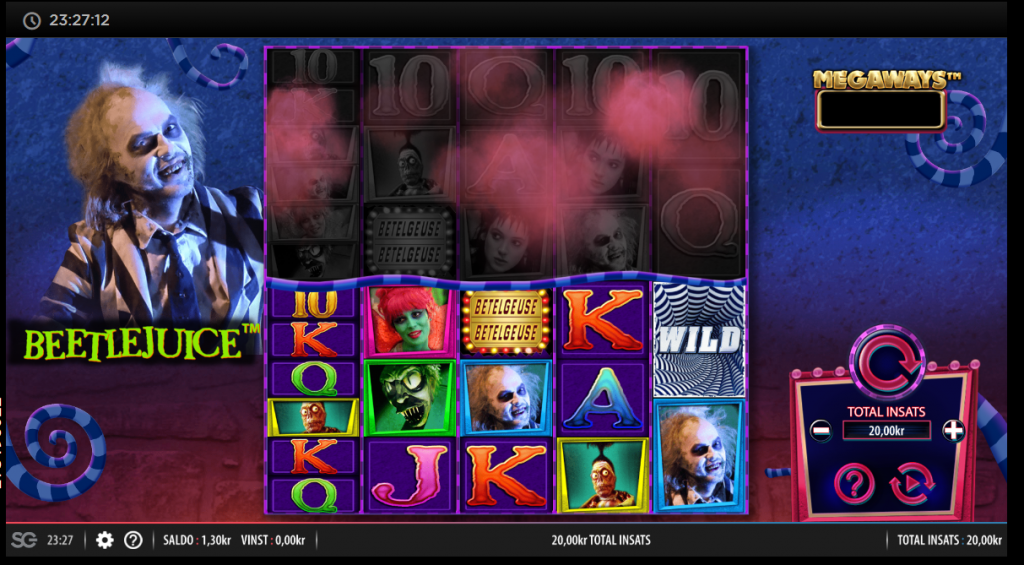 En av Tim Burtons första filmer, kultklassikern Beetlejuice, blev en omedelbar hit redan under 1988 med sin grymma blandning av komedi och skräck. En mängd exotiska karaktärer anslöt sig till den skrämmande/älskvärda grönhåriga legenden Beetlejuice på ett spökhusäventyr, som allt börjar med att ett vanligt par plötsligt inser att de är spöken. Vi älskade det då och vi älskar det fortfarande nu, och tur för dig så finns det ett Beetlejuice Megaways-spelautomat på ditt favoritcasino, här på Playojo.