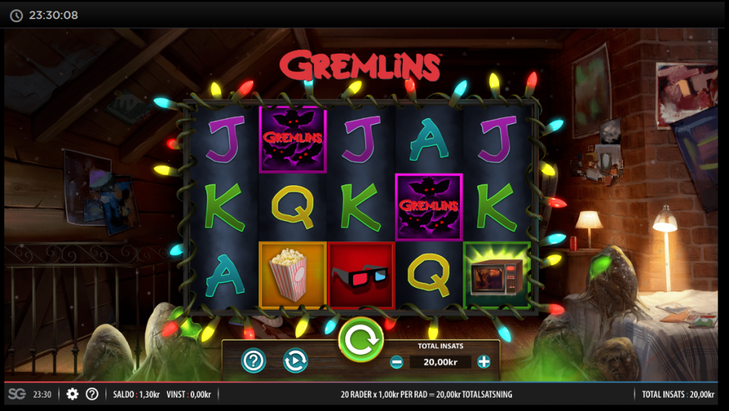 Det officiella spelet för filmen, Gremlins slot, tar dig tillbaka till år 1984, till sovrummet där allt hände. Med 8 generösa bonusfunktioner att dra nytta av finns det mycket att äta här. Du har funktionen Avoid the Sun Free Spins för obegränsade gratissnurr, Gizmo Box Hunt-funktionen där du väljer en låda för att avslöja ett kontantpris och No More Cash After Midnight-funktionen där du snurrar på klockan för att flytta längs multiplikatorns spår för priser upp till 100x din insats. Verkligen mums.
