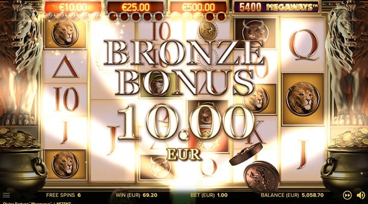 I NetEnt Divine Fortune Megaways har de tre progressive jackpottarna dock bytts ut mot tre fasta jackpottar. Här finns trots allt en boostande Megaways-mekanik som innebär upp till 117 649 potentiella sätt att skapa vinnande kombinationer.