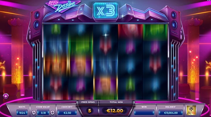 Neonskimrande Reel Desire kommer med 5 hjul, 3 rader och hela 1024 sätt att skapa kombinationer. Några egentliga vinstlinjer finns inte. Din uppgift är bara att få likadana symboler på intilliggande hjul. Kombinationerna ska starta från vänster och innehålla minst 3 matchande symboler.