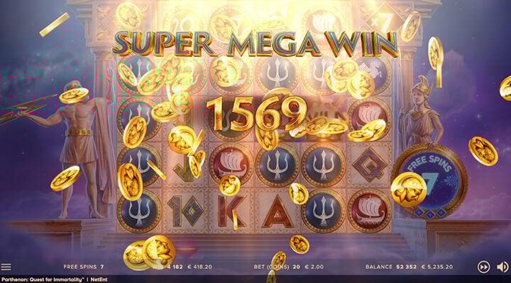3 stycken Free Spins-symboler triggar läget med 8 gratissnurr. Varje ytterligare Free Spins-symbol du triggar läget med ger ytterligare 4 extra gratissnurr! Under Parthenon Quest for Immortality Free Spins kommer dessutom Free Spins-symbolen att fortsätta landa.