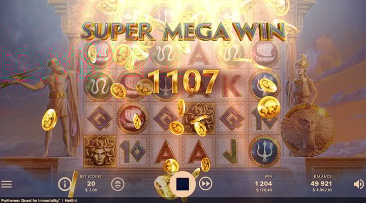 Här slutar dock likheterna. Medan Divine Fortune utspelade sig i mörka och ekande tempel, utspelar sig Parthenon Quest for Immortality spelautomat uppe bland molnen! Tillsammans med helt unika specialfunktioner resulterar detta i en betydligt mera öppen och fri atmosfär.