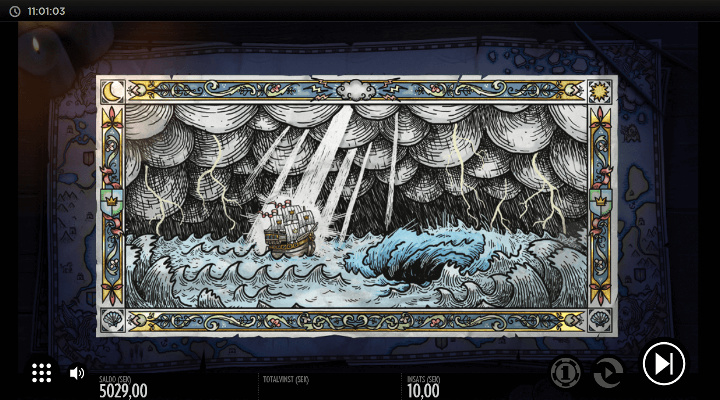 Innan du börjar spela bör du dock först bestämma din insats. Det här gör du enkelt och snabbt genom att klicka på myntsymbolen och välja en av de färdigt tillgängliga insatserna. Du kan satsa allt mellan 1 krona och 1000 kronor per snurr. När du har gjort ditt val är du redan klar att börja snurra. Håll tummarna och hoppas på att lyckans vindar blåser dig rätt på de okända haven!