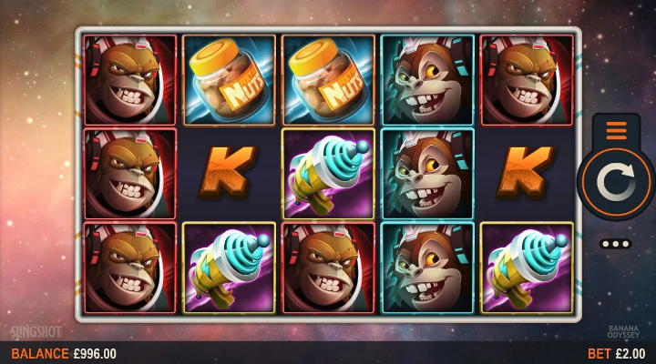 Välkommen ut på ett intergalaktiskt äventyr i Banana Odyssey slot. Dina kumpaner är ett gäng halvgalna apor. Apor i rymden? Javisst, det är precis vad spelet handlar om. Målet är en blå planet med en bananformad kontinent.