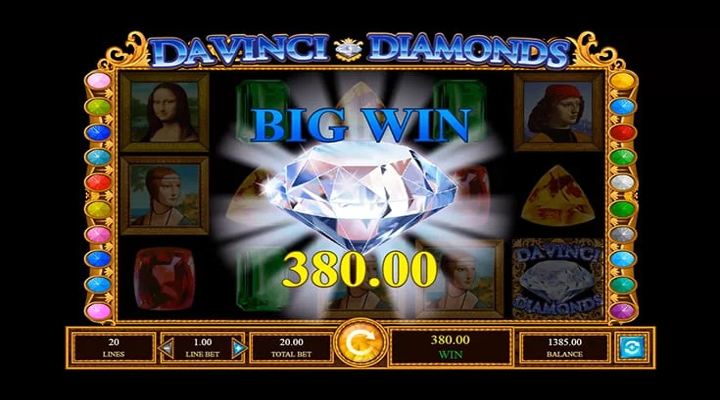 I grund och botten fungerar Da Vinci Diamonds casinospel som en traditionell slot. Här finns 5 hjul, 3 rader och 20 vinstlinjer. I grundspelet ska du få minst 3 likadana symboler längs vinstlinjerna. Detta ska ske på intilliggande hjul med start från det första längst till vänster.