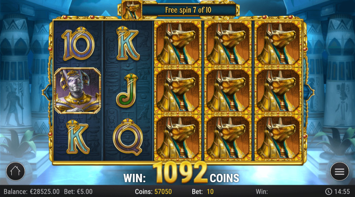 Lägg även märke till att du kan återtrigga fler gratissnurr inuti free spins-läget. Skarabésymbolen syns nämligen fortfarande. Ytterligare 3 eller fler av den på ett snurr ger dig ytterligare 10 Doom of Egypt free spins!