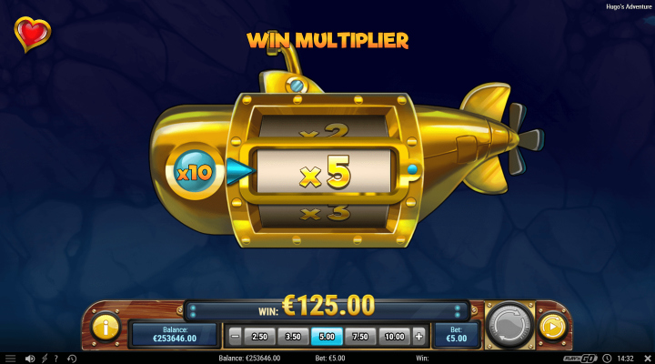 För att trigga igång bonusspelet i Hugo’s Adventure ska du sikta mot att få fram ubåten. Det behövs faktiskt bara 2 stycken! Lyckas du med detta dyker Hugo ner i havet för att öppna snäckor och skattkistor! När bonusspelet börjar får du 1, 2 eller 3 liv.