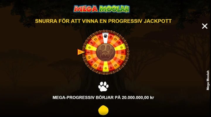 Så till huvudattraktionen i Mega Moolah slot – de progressiva jackpottarna. De är så kallade nätverksjackpottar, vilket innebär att spelare på olika casinon bidrar till att öka en och samma jackpott. Dessutom delar alla spel i serien på samma jackpott – det är också anledningen till att jackpotten kan växa sig så stor – som mest har den delat ut ca 196 miljoner kronor till en lycklig spelare.