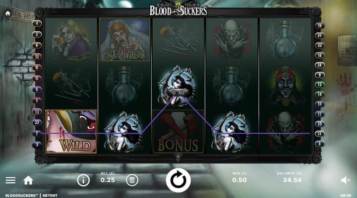 Blood Suckers is a casino game with 3 reels, 5 rows and 25 fixed paylines. If you’re the kind of Sucker who likes to learn the game before they play for real, there’s a demo version at PlayOJO, so you can try before you buy.