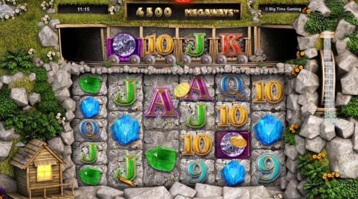 Unlike our other Megaways slots like Raging Rhino, White Rabbit and Extra Chilli, this Bonanza game goes big on win lines by using an extra row of symbols, brought round by mining carts on a track above the reels.