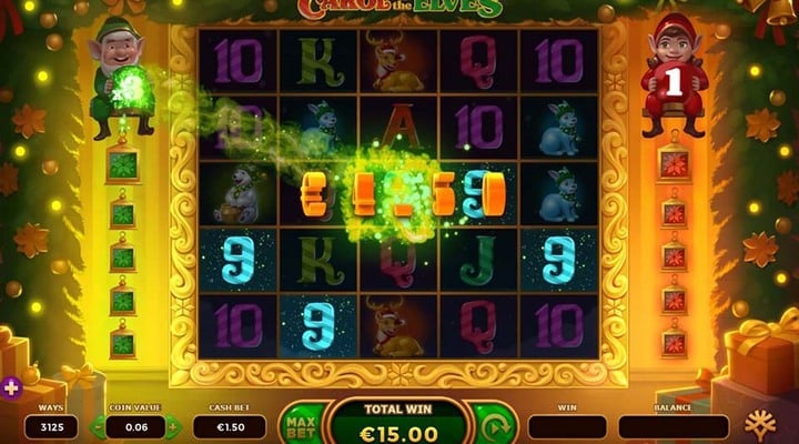 When you first load the Carol of the Elves slot machine, snowflakes block out many of the symbols. This leaves just 45 potential ways to win. Each winning combination awards Magic Stars that reveal additional symbols and triggers a Respin. Another win will reveal yet more of the reel positions.