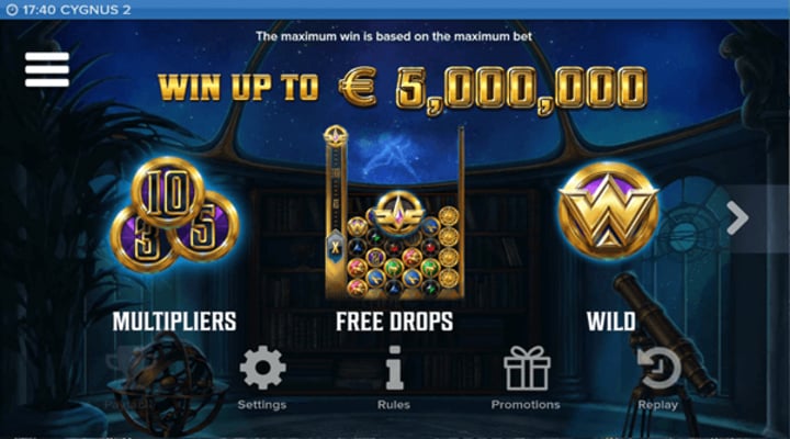 Cygnus 2 has loads of great bonus features to make every spin exciting. There are wilds, avalanche wins, expanding reels and multipliers. There's also a brilliant free drops round, where your multipliers stay active throughout.